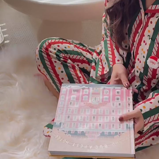 Celebrate the holidays in cozy style with this festive Christmas pajama set. Featuring classic red and green candy cane stripes, playful polka dots, and a cute Santa Claus pocket embroidery, this sleepwear captures the joyful spirit of Christmas. Made from breathable, soft fabric, it ensures comfort for lounging, sleeping, or enjoying holiday traditions with family and friends. Perfect for Christmas Eve, gift exchanges, or festive photoshoots.