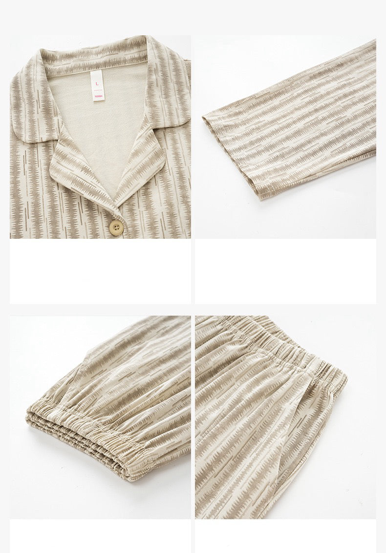 Bring comfort and safety home with our new Couple Cotton Pajama Set. Made from 96% natural cotton with a touch of spandex, this loungewear is as soft as clouds against your skin. Certified safe for sensitive skin and tested for antibacterial and anti-mite properties, it ensures a restful, worry-free sleep. Perfect for cozy nights, lazy weekends, or casual lounging together.