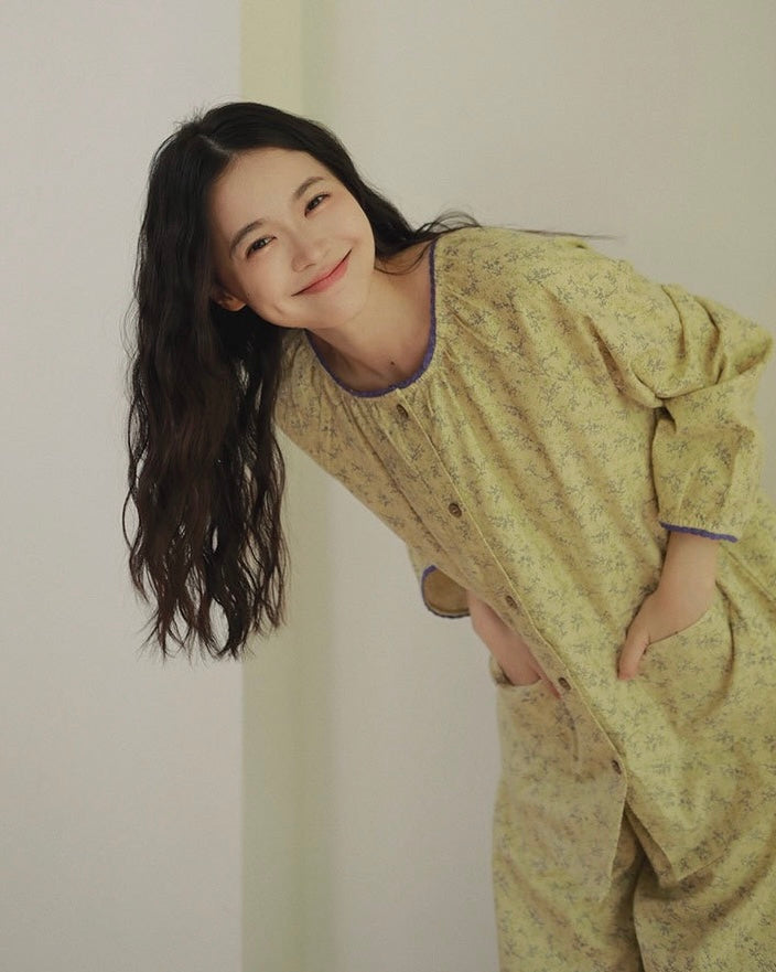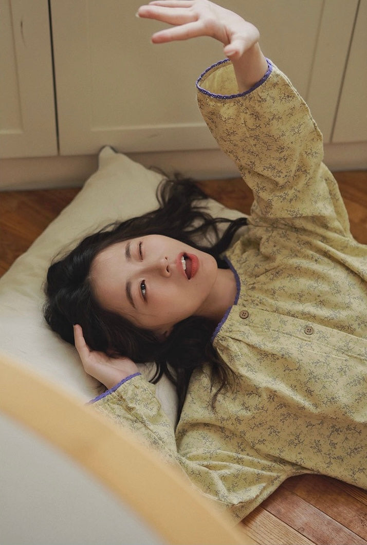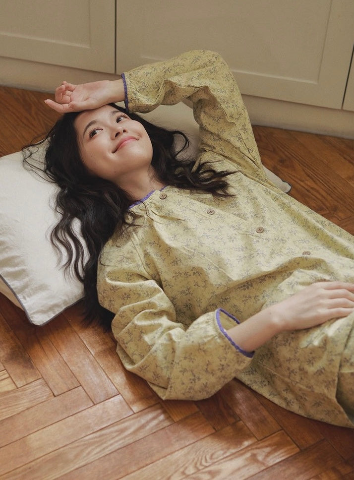 Bring warmth, comfort, and timeless elegance into your home life with this Vintage Floral Pajama Set. Designed with delicate yellow floral prints and subtle purple trim, this cozy loungewear is perfect for creating unforgettable moments — from sipping coffee with your best friend on the sofa to enjoying late-night talks with loved ones.