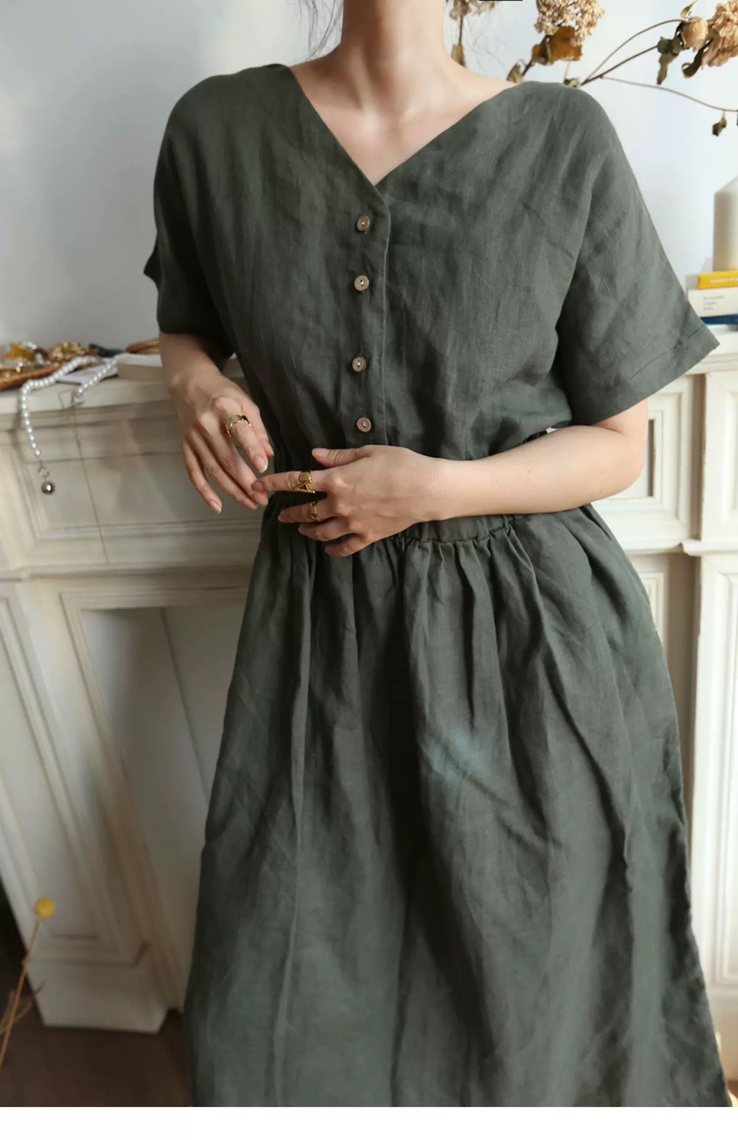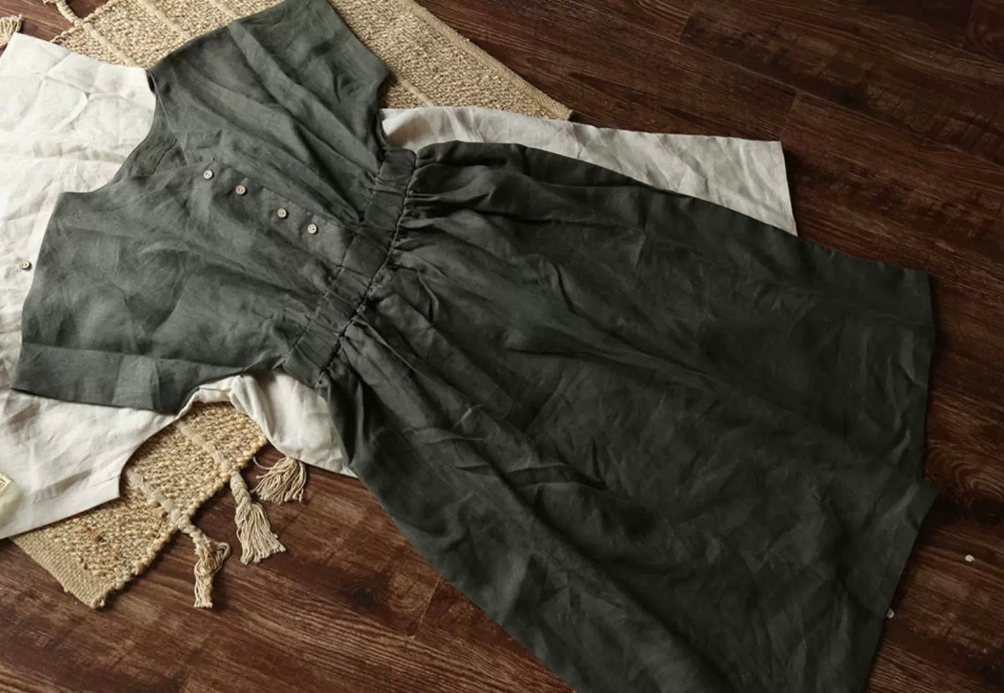 Each dress is artisan-made, which means no two pieces are exactly the same. The natural linen texture, breathable and eco-friendly, feels soft against the skin while giving you effortless elegance. With custom color and size options, it’s more than a dress – it’s a piece made just for you.
