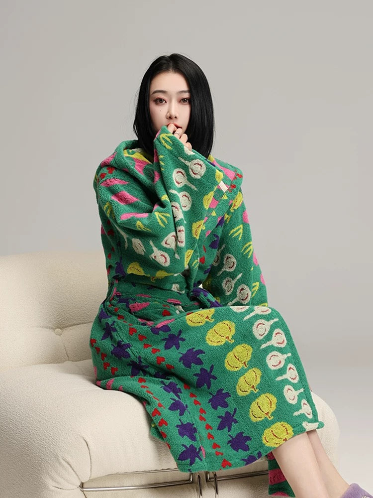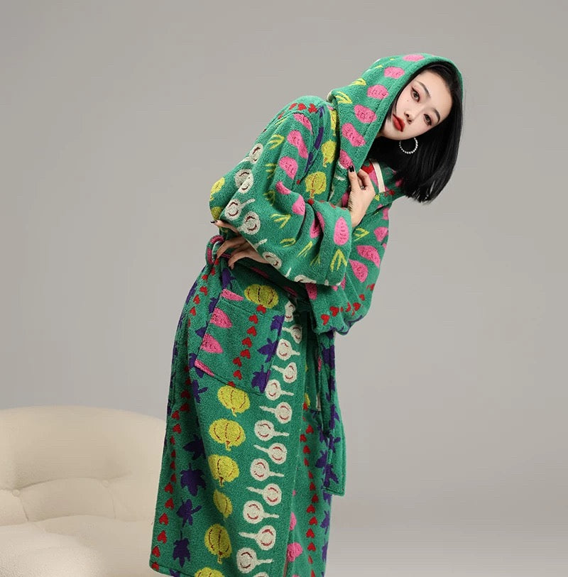 Inspired by the joy of shared family rituals, the playful vegetable pattern design and hooded style bring smiles and comfort. Whether it’s a post-bath cuddle, a lazy weekend morning, or bedtime storytelling, this robe transforms everyday moments into cherished family memories.